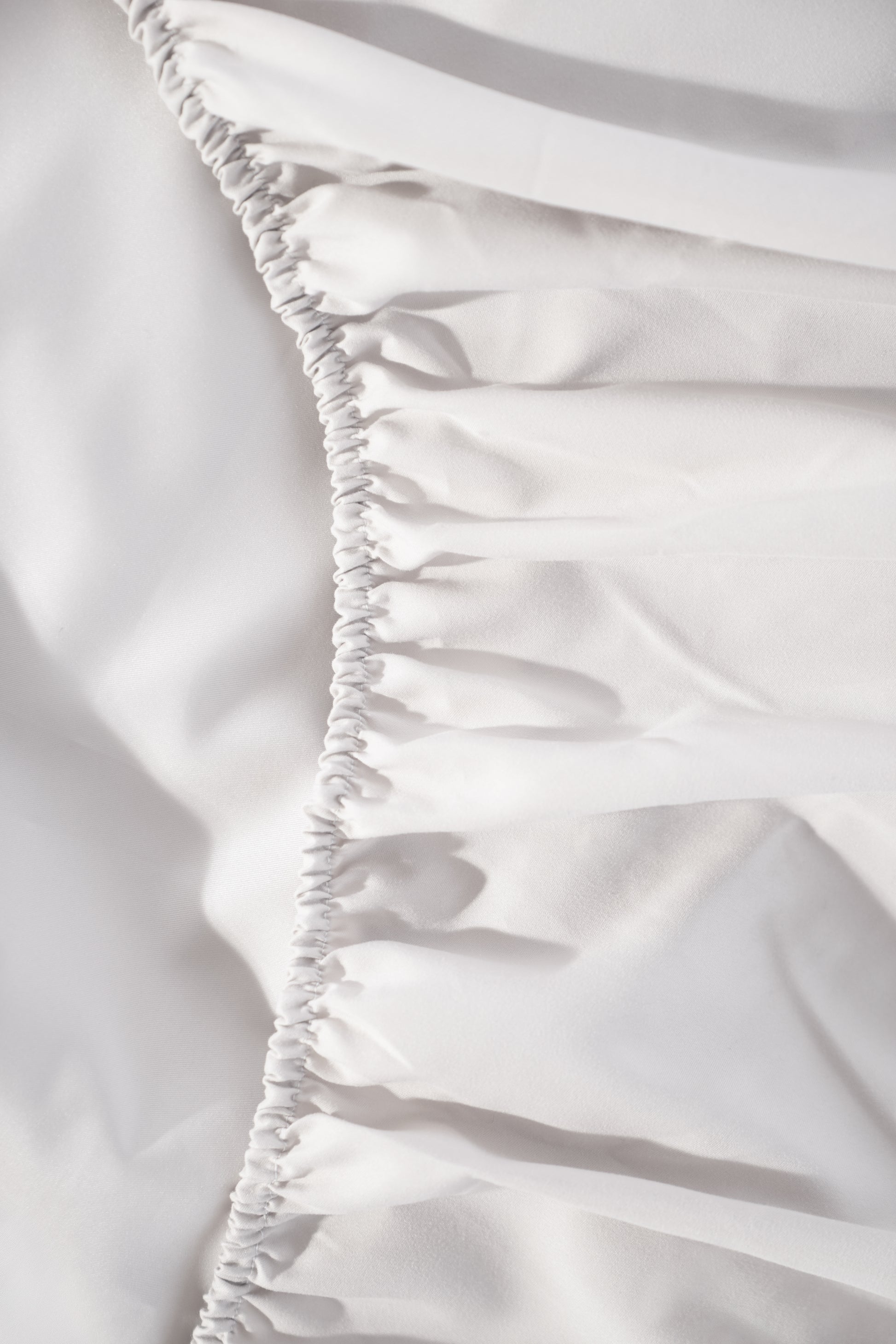 Formed by a dense polyester weave, the Aurora's durable synthetic construct is easy to care for, wear-resistant, and effective at moisture-wicking. Resilient in structure and satiny smooth, this bed sheet guarantees long-term comfort and an air of chicness.